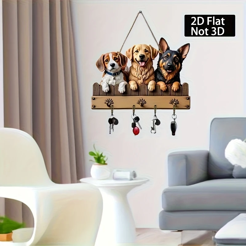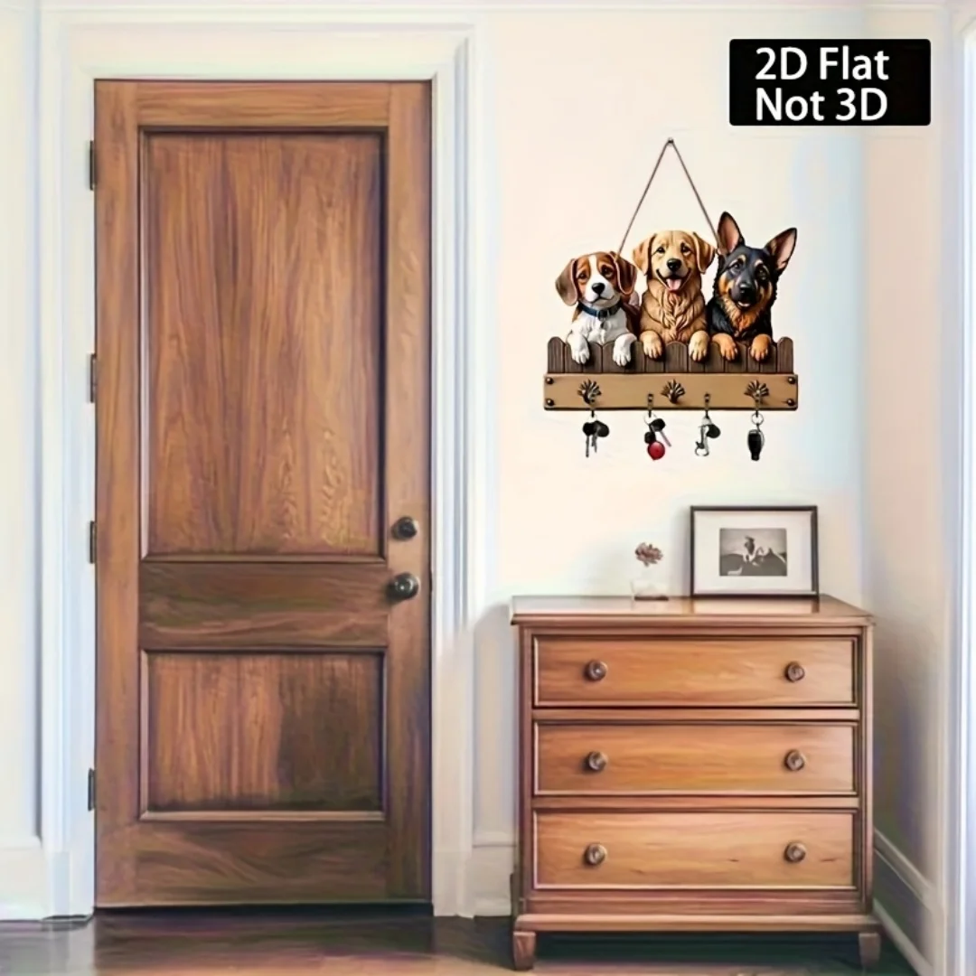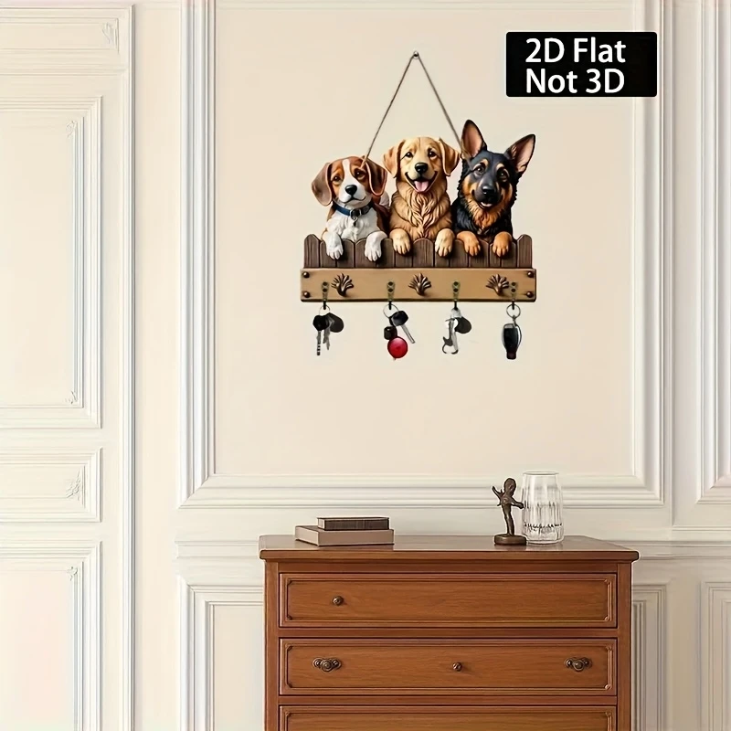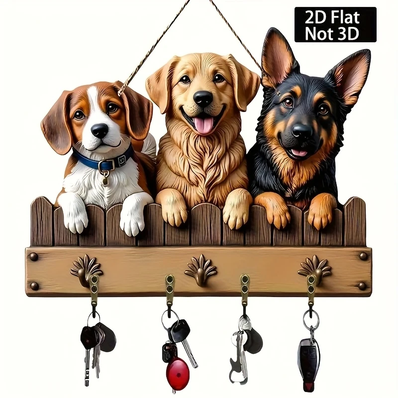 Farmhouse Dog Key Rack – 12in Wooden (Beagle, GSD, Golden)