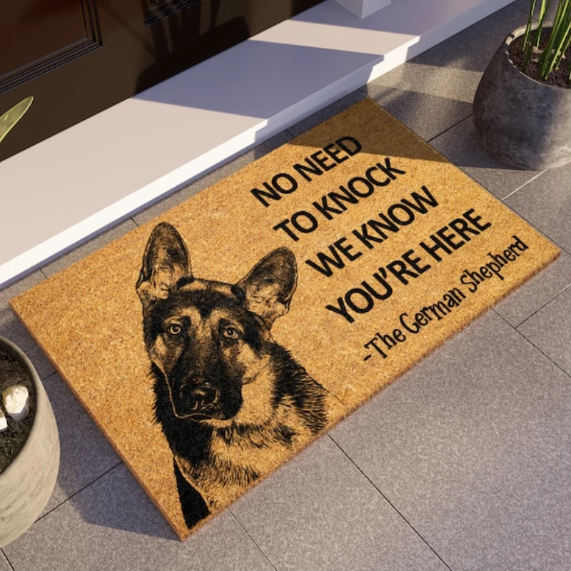 It’s not just a doormat, but a warm greeting for every guest and a sweet expression of your love for German Shepherds. Add a personal touch to your front door with this funny and welcoming mat!